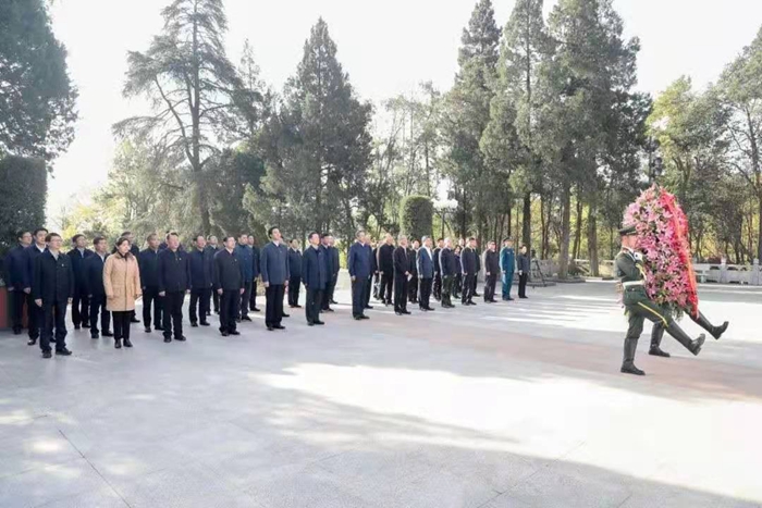 图为省委书记李锦斌,省委副书记、省长王清宪,省政协主席张昌尔等来到金寨县革命博物馆,重温革命战争的峥嵘岁月,深情缅怀革命先辈的丰功伟绩。 记者 徐国康 摄