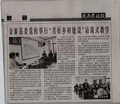 [编者按] 《安徽党校报》是中共安徽省委党校机关报,也是全省委党校系统唯一一家由国家新闻出版署批准公开出版发行的报纸,主要刊载全省党校系统工作的新做法新经验。报纸为四开四版,彩报。每月10日、25日出版。2014年县委党校积极探索创新党员干部培训的教学方式和方法,得到省市党校的充分肯定。《安徽党校报》2015年开年第一期第二版“教研”版,刊登了我校举行“美好乡村建设”访谈式教学的创新做法。