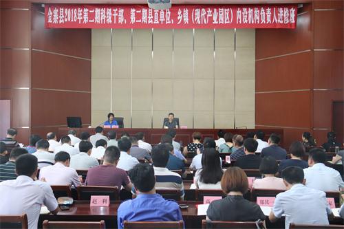 8月1日,金寨县2018年第二期科干班,第二期内设机构负责人进修班开班仪式在县委党校大报告厅举行。金寨县委组织部部长赵锦文作了讲话;县委党校常务副校长吴继彩主持,并就教学安排和培训纪律进行了说明。