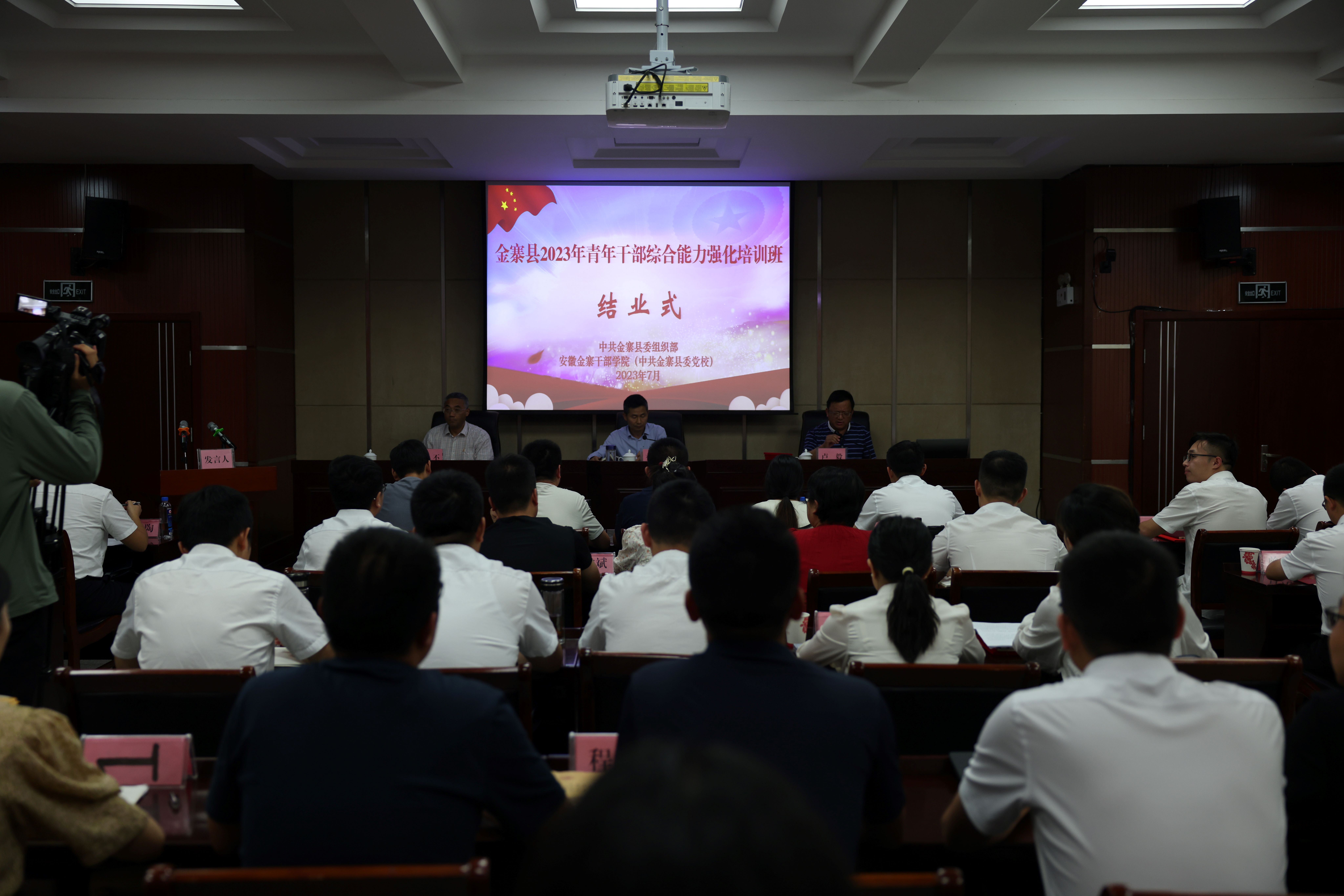 当天下午,在县委党校立清楼报告厅举行金寨县2023年青年干部综合能力强化培训班结业仪式,会议由县委组织部副部长卢毅主持,安徽金寨干部学院(中共金寨县委党校)院(校)委委员、教研部主任赵丕宣读表彰文件,安徽金寨干部学院(中共金寨县委党校)常务副院(校)长查德金出席并作总结讲话。