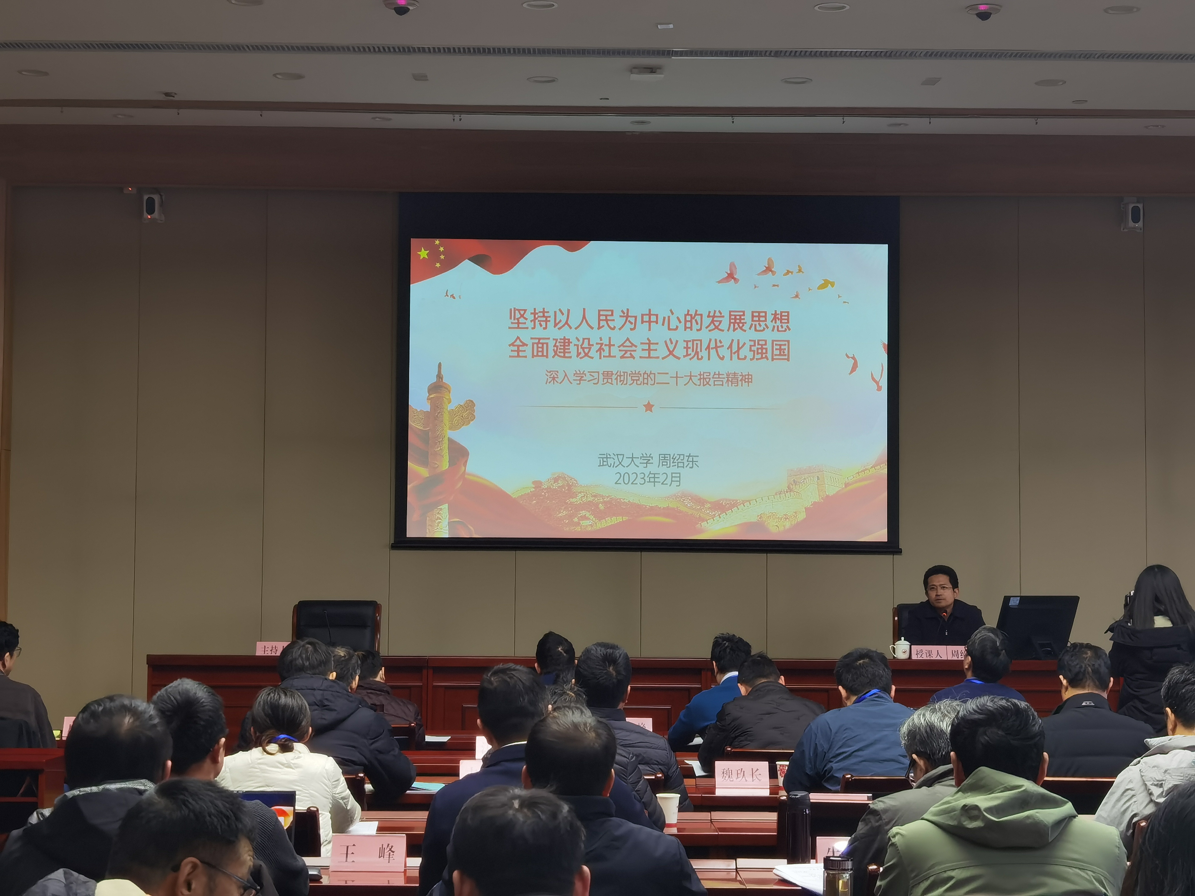 本次培训班,学院邀请了清华大学、武汉大学、安徽大学、安徽省委党校多名专家和教授围绕“党的二十大报告”“习近平新时代中国特色社会主义思想”,先后开展《坚持以人民为中心的发展思想 全面建设社会主义现代化强国——深入学习贯彻党的二十大报告精神》《以中国式现代化全面推进中华民族伟大复兴》《坚定不移推进党的自我革命》《深入实施创新驱动发展战略、加快建设教育强国、科技强国、人才强国》《学习遵守党章 增强党员意识——二十大党章解读》《习近平新时代中国特色社会主义思想的世界观和方法论》等专题教学。