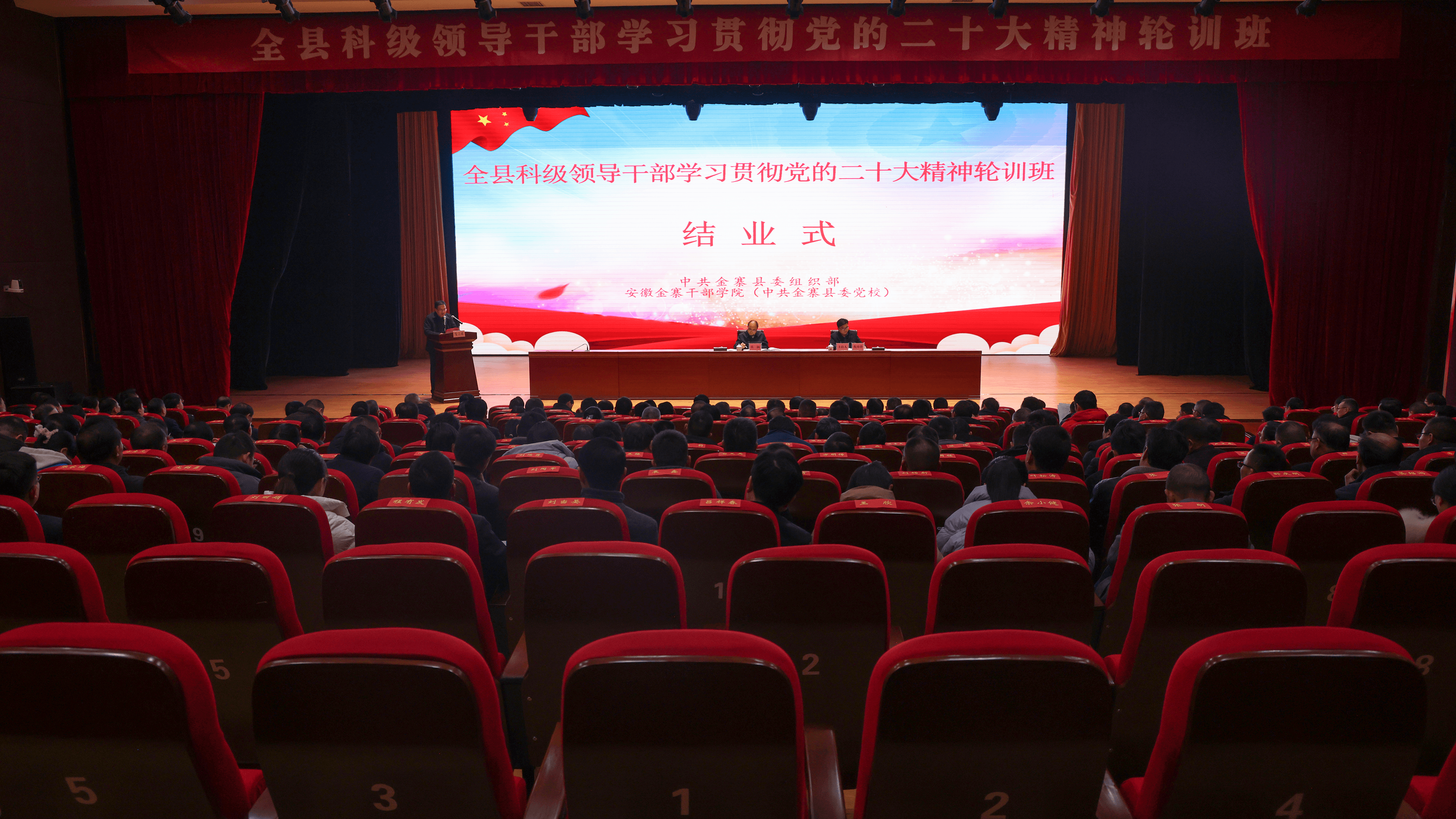 2月24日下午,金寨县委副书记、县长张涧为全县科级领导干部学习贯彻党的二十大精神轮训班作专题辅导并参加结业仪式,他强调要以“钉钉子”的精神抓好贯彻落实,真正把学习成果转化为实实在在的发展成效,奋力推进县域经济高质量发展。县委常委、组织部部长倪秀锋主持结业仪式。
