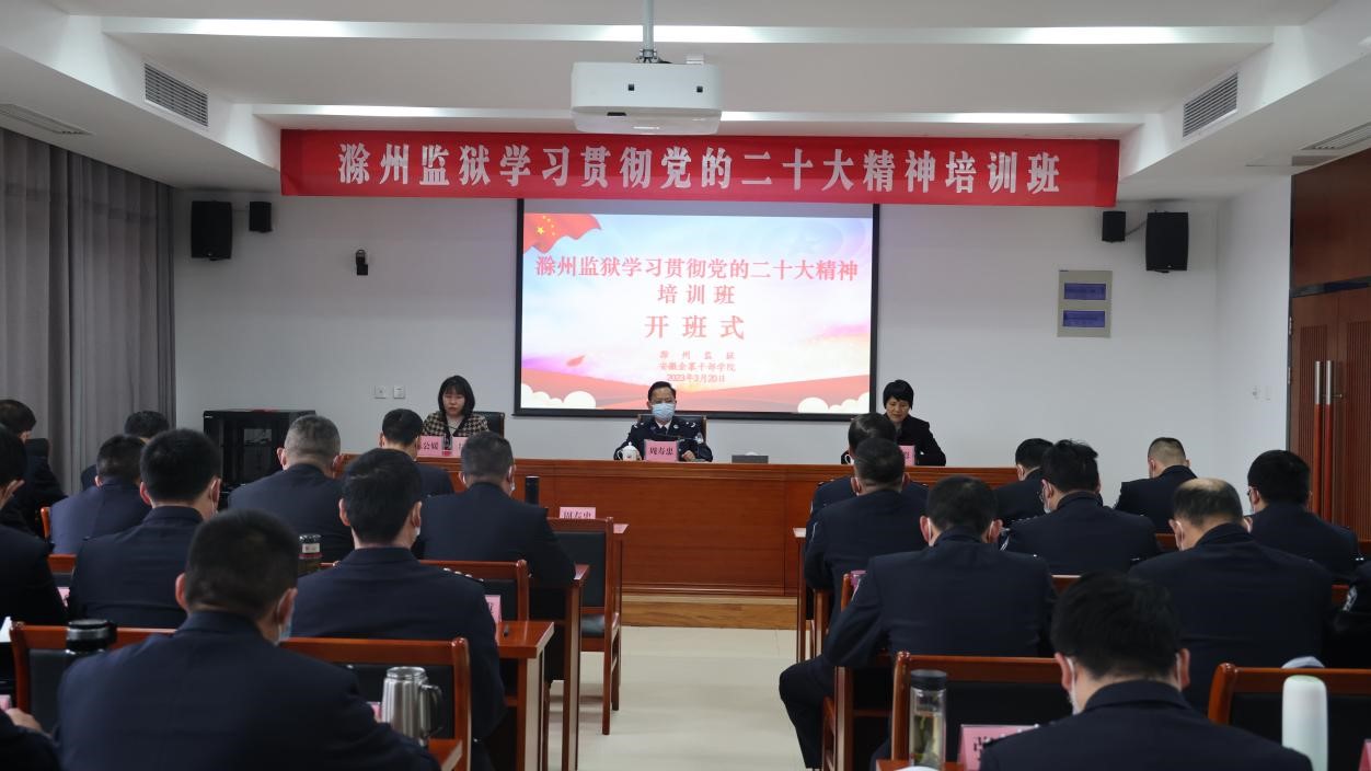 为了深入学习宣传贯彻党的二十大精神,切实将党的二十大精神转化为履职尽责、担当作为的实际行动,3月20日,滁州监狱学习贯彻党的二十大精神培训班(第二期)在我院顺利开班。滁州监狱党委副书记、监狱长周寿忠作开班动员讲话,安徽金寨干部学院(中共金寨县委党校)副院(校)长吴继彩出席开班仪式,来自滁州监狱的40多名民警参加本期培训。