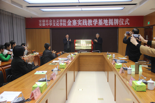3月8日,安徽社会主义学院、安徽中华文化学院实践教学基地揭牌仪式在安徽金寨干部学院举办。省委统战部副部长,省社会主义学院党组书记、副院长陈昌虎,县委副书记、县长汪冬,县委常委、县委办主任汪承平出席仪式。安徽金寨干部学院全体教职员工参加揭牌仪式。