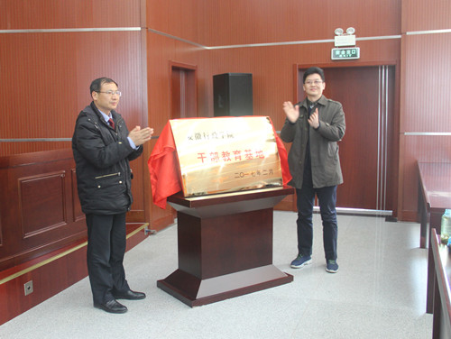 安徽行政学院培训管理处处长潘理权和县委副书记王思春为安徽行政学院干部教育基地共同揭牌。