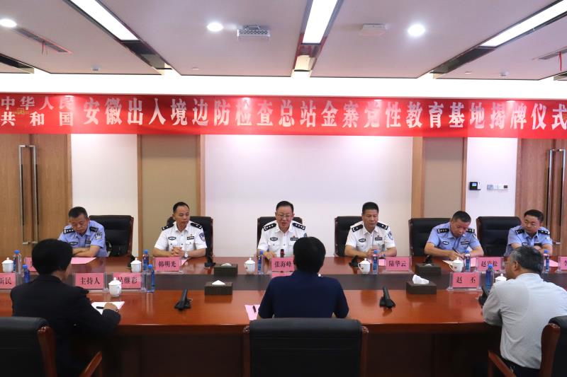 6月22日上午,安徽出入境边防检查总站党性教育基地揭牌仪式在安徽金寨干部学院举行。安徽边检总站党委书记、政治委员张海峰,党委委员、后勤保障处处长陆华云,党委委员、边防检查处处长韩明光,党委委员、政治处主任赵岩松,金寨县委副书记、副县长闫福震出席仪式。