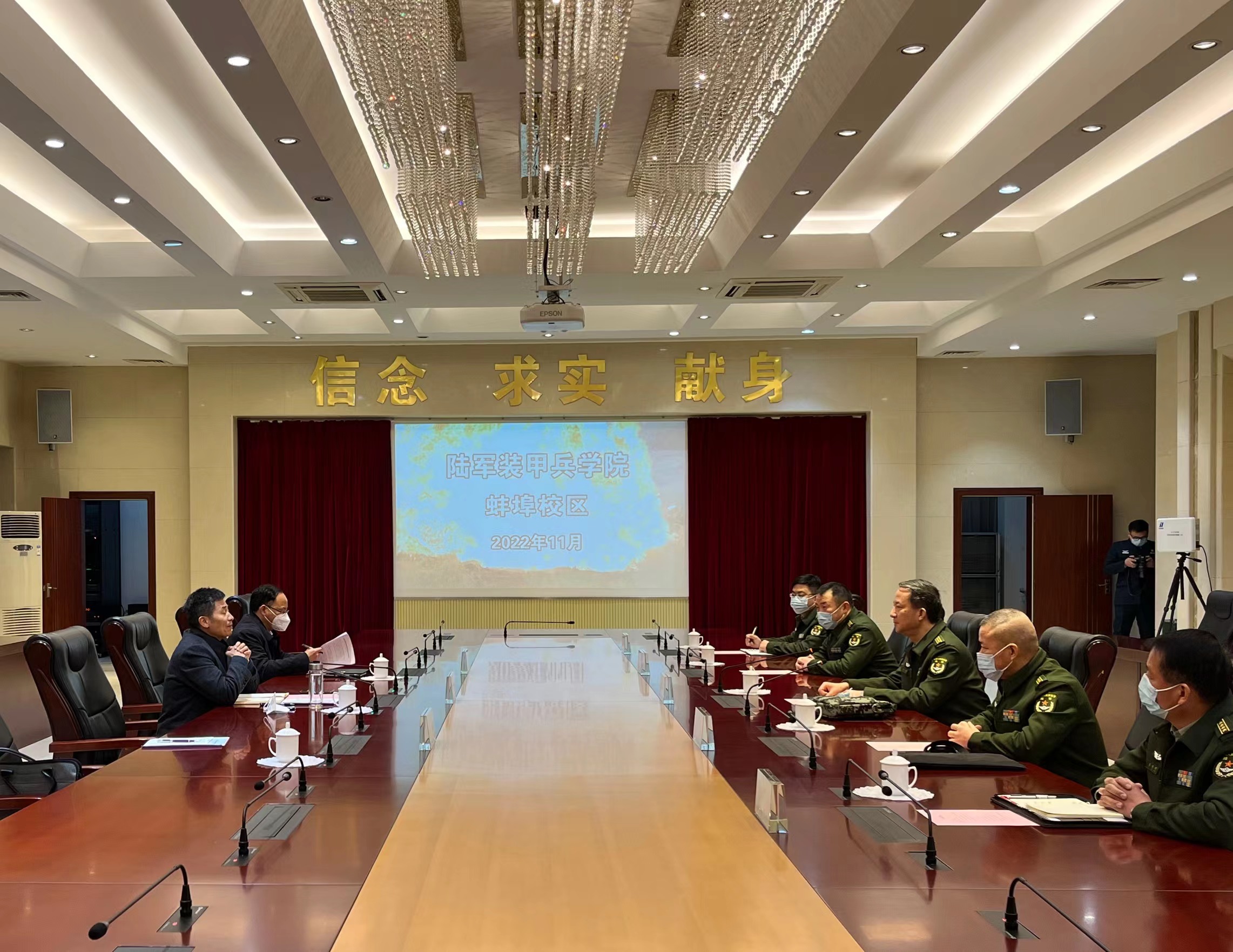 早春二月,万物勃发,2月14日上午,县委常委、常务副院(校)长查德金一行赴结对共建的陆军装甲兵学院蚌埠校区调研,并参加座谈会,向学院全体师生、官兵致以新春问候。陆军装甲兵学院蚌埠校区主任张庆、校区政委曾文勇、校区副主任邵东春参加。