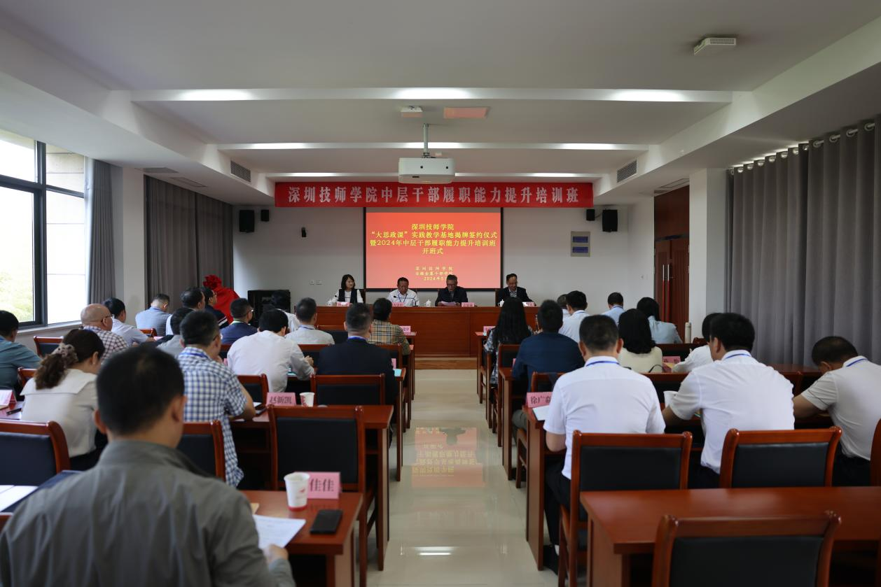 揭牌仪式后,在学智楼307教室举行了2024年深圳技师学院中层干部履职能力提升培训班开班式。此次培训,设置了《学习贯彻习近平新时代中国特色社会主义思想》《鄂豫皖革命根据地的光辉历程》《革命先辈后代回忆访谈》《徽文化与新发展理念》等课程。