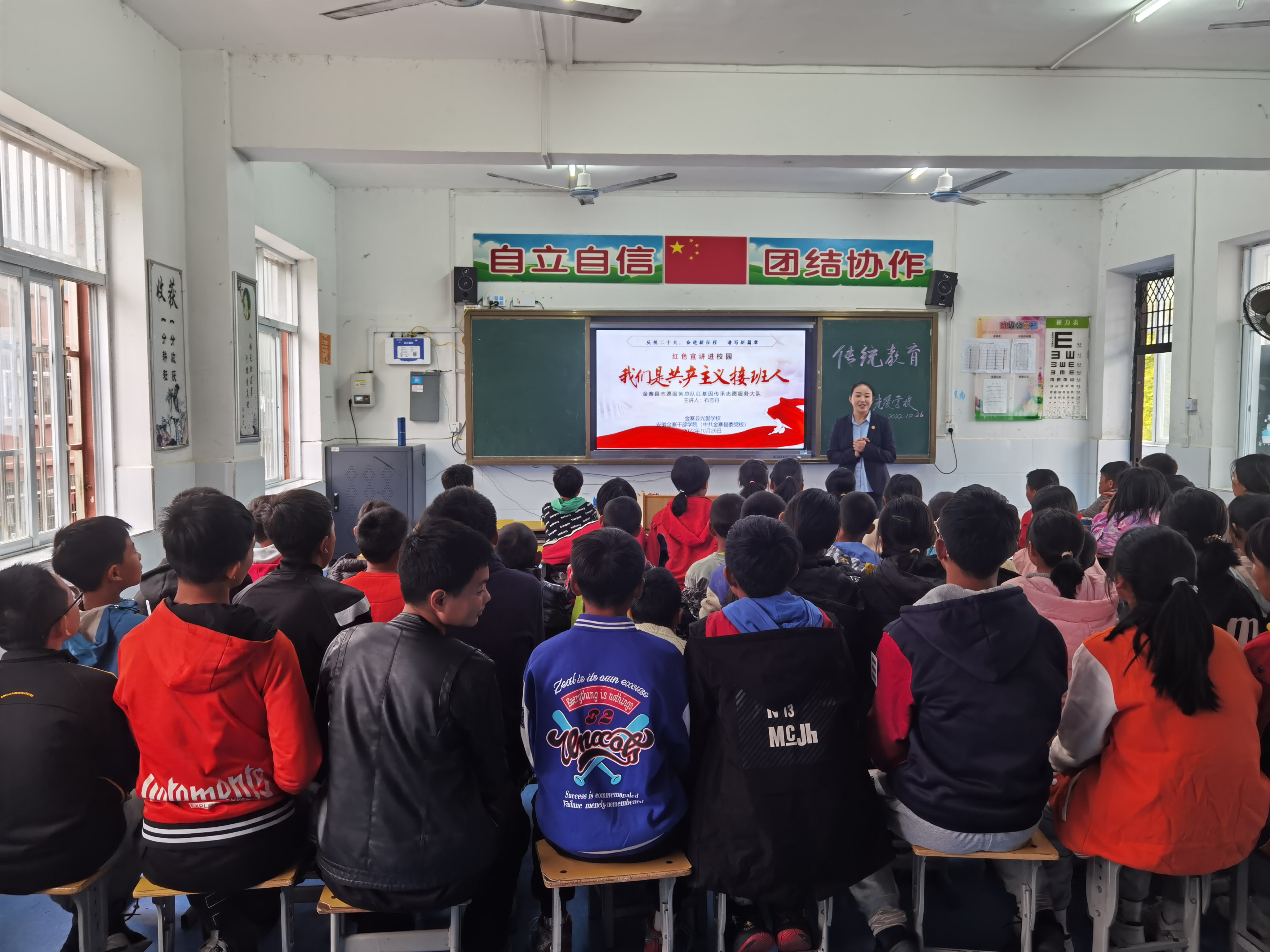 发挥思想引领作用,积极开展理论宣讲。坚持理论学习与实践活动相统一,着力做到学在先、思在前、作表率。立足金寨革命老区丰富的红色文化资源,强化党史研究,把党的二十大精神学习教育与传承红色基因紧密结合,积极开展理论研究阐释,推进党的二十大精神进企业、进农村、进学校、进社区,推动入脑入心。党的二十大召开以来,院(校)教师赴各乡镇、各中小学开展宣讲场次达到38场次,受众4800余人。院(校)致力于扎实做好党的二十大学习宣传工作,切实把思想和行动统一到习近平总书记重要讲话精神和党中央的决策部署上来,将党的二十大精神融入金寨红色历史教育内容,提升学习教育效果,推进党的二十大精神学习教育走深走实。