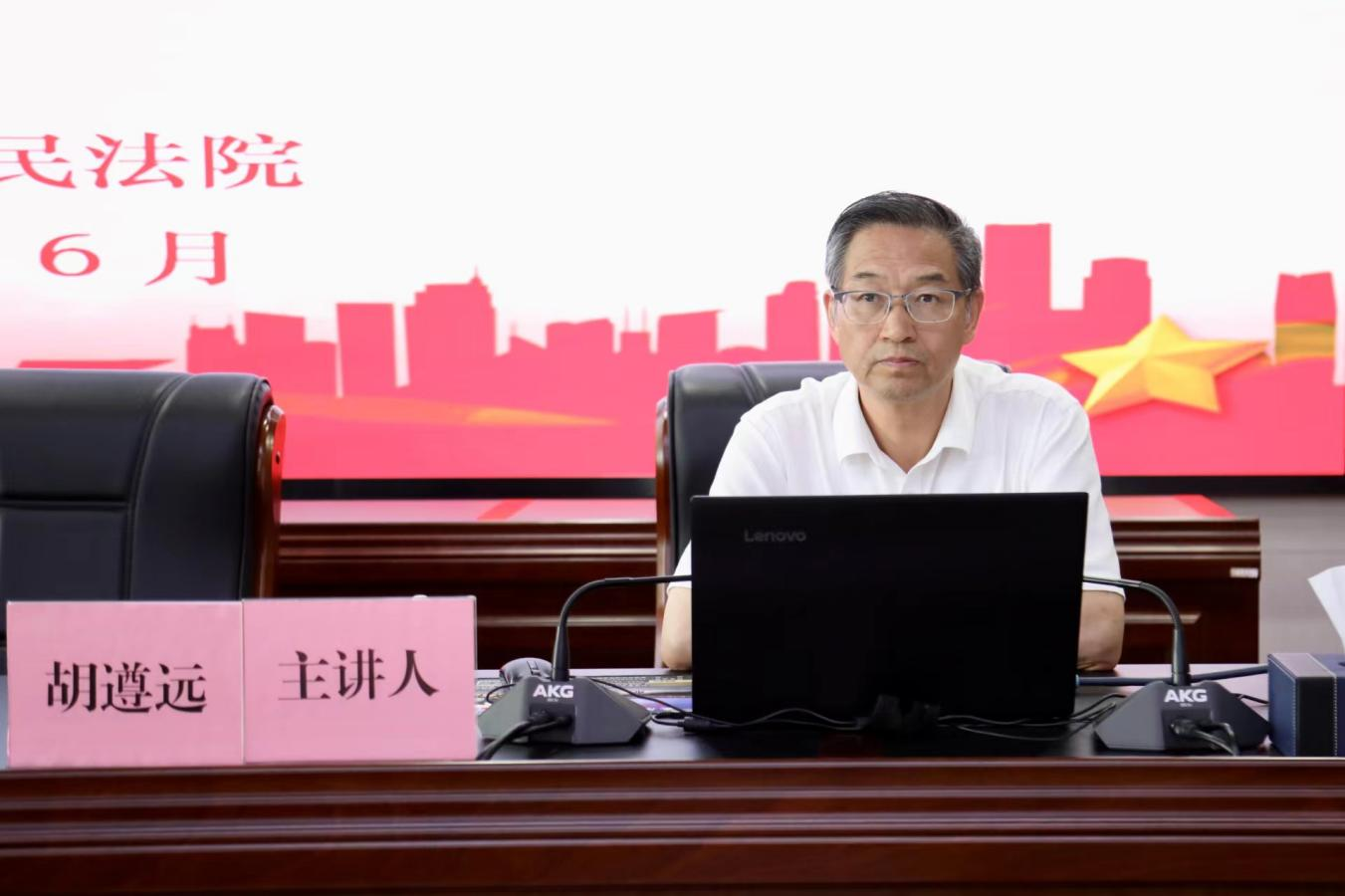 6月25日,为庆祝党的第102个生日,金寨县人民法院邀请安徽金寨干部学院副院长胡遵远作《传承红色家风 赓续红色血脉——从金寨红色家风故事中汲取智慧和力量》专题报告。
