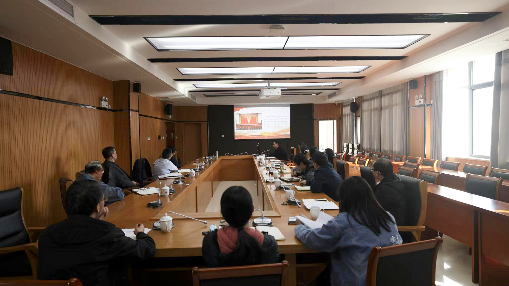 10月18日下午,安徽金寨干部学院(中共金寨县委党校)院(校)委理论学习中心组召开扩大会议,专题学习宣传党的二十大会议精神,县委常委、常务副院(校)长查德金主持会议,院(校)领导班子成员、各部室负责人参加会议。