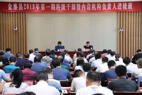 2019年8月5日上午,金寨县2019年第一期科级干部暨内设机构负责人进修班在金寨县委党校金东苑开班。县委常委、组织部部长赵锦文出席开班并作动员辅导报告,金寨县委党校常务副校长吴继彩主持开班典礼。来自全县共98名学员参加此次开班。