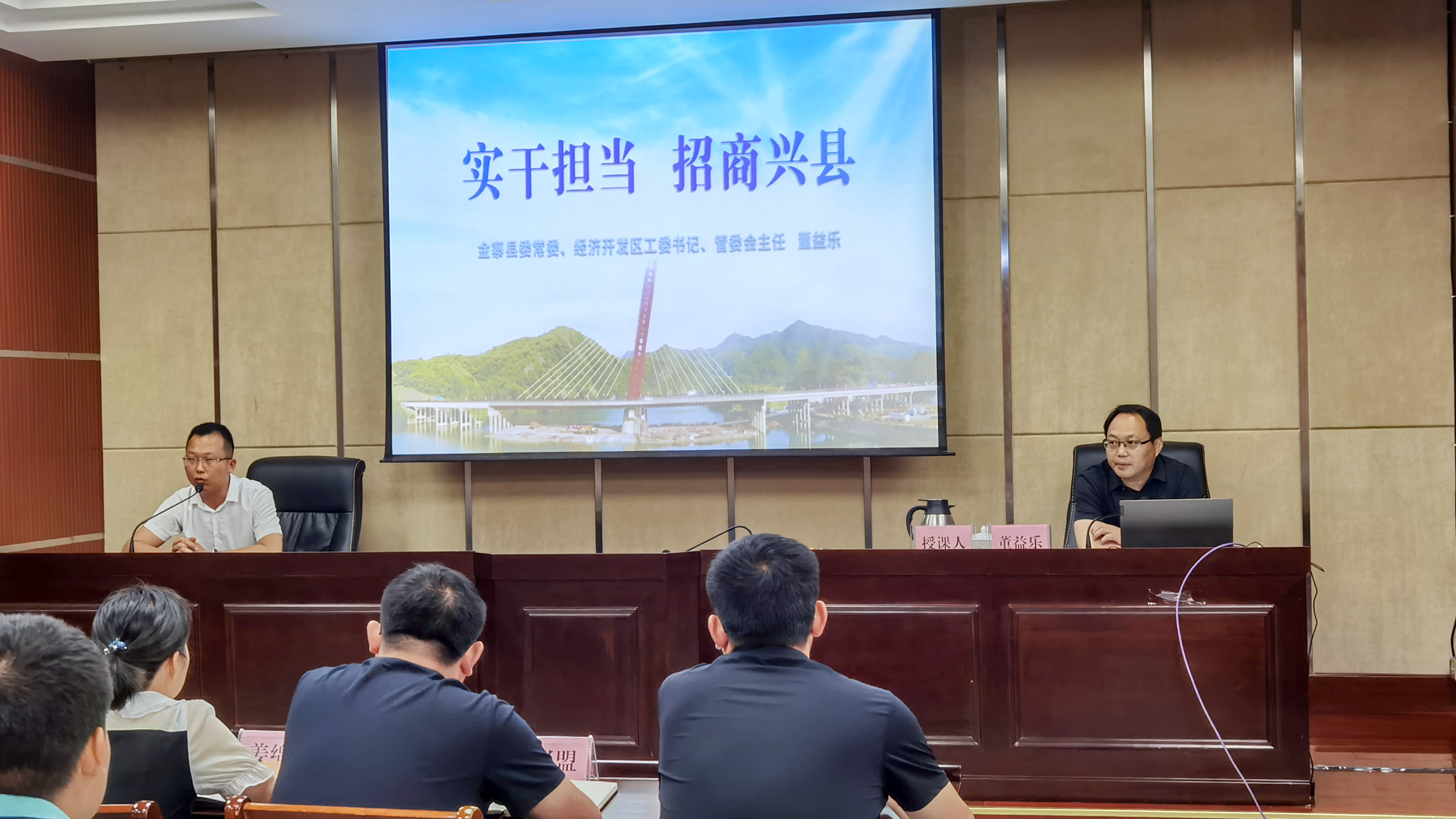 董益乐从全县招商引资总体情况、四大主导产业发展情况、招商引资支持政策解读、招商体制机制改革、目前存在的主要问题及下一步工作思路等六个方面为全体学员作了一堂全面、精彩的授课。