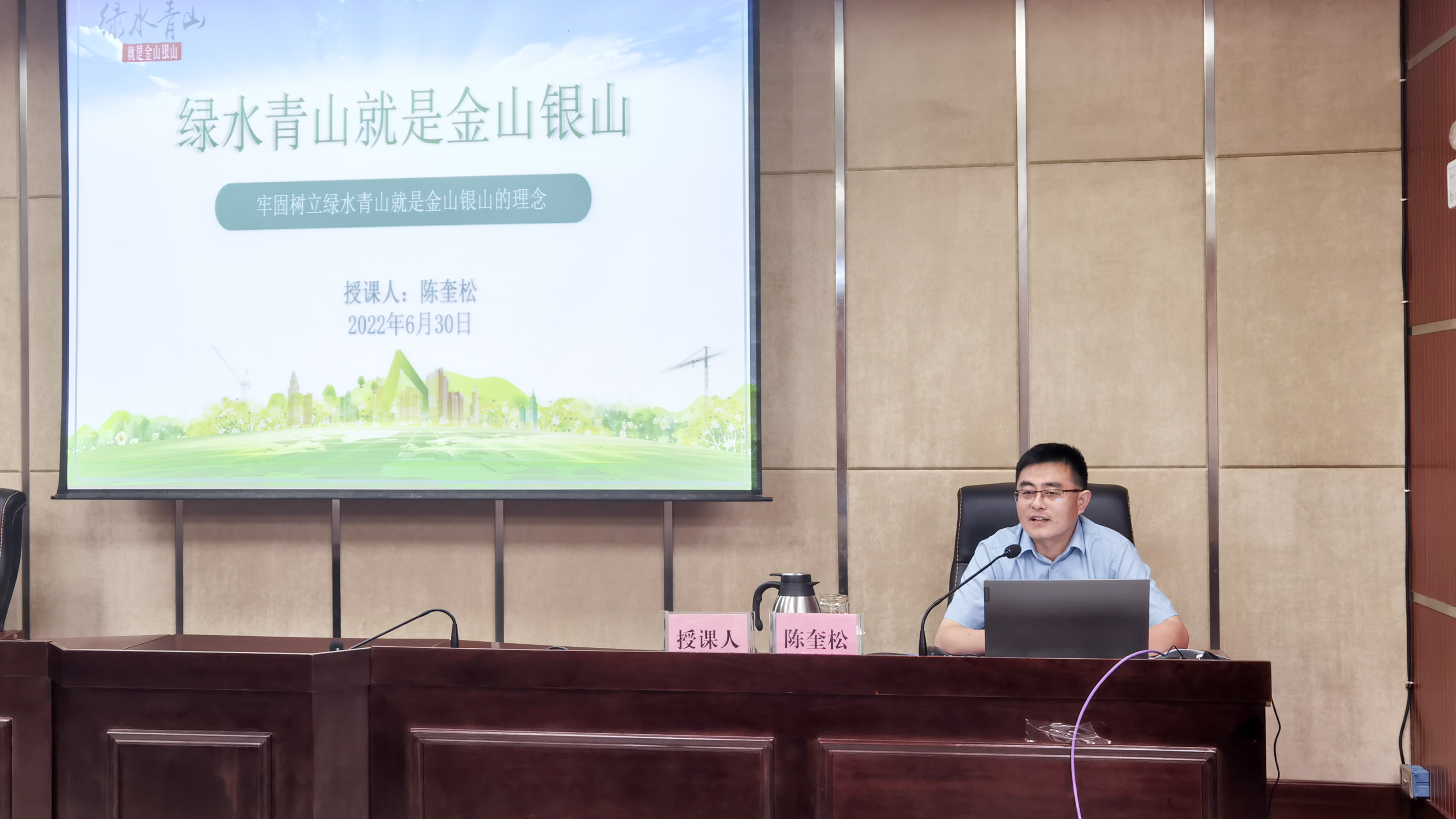2022年 6月30日,金寨县副县长陈奎松以《牢固树立绿水青山就是金山银山的理念》为题,在安徽金寨干部学院为2022年青年干部强化培训班学员上了一堂专题课。