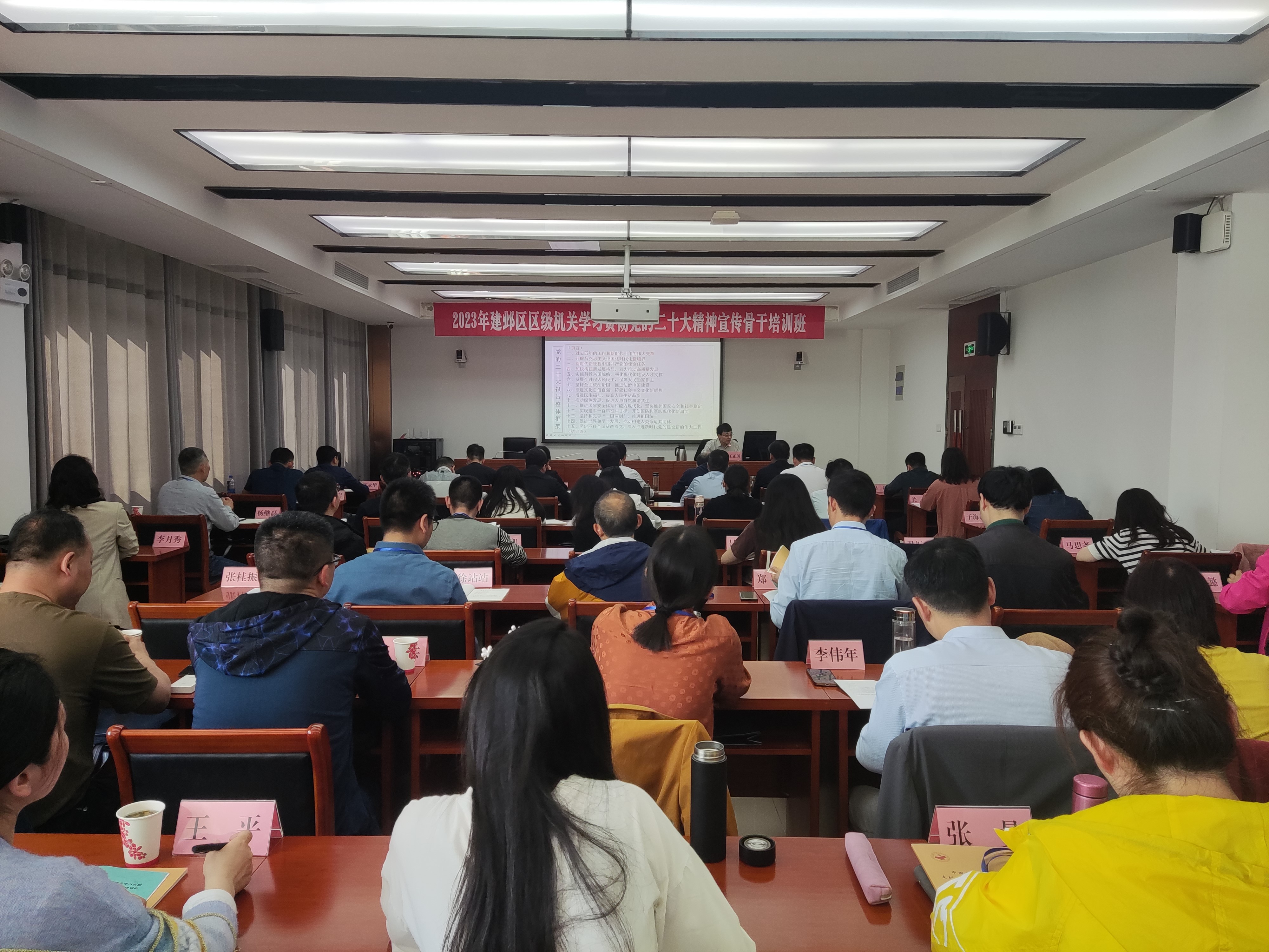 4月17日至21日,2023年建邺区区级机关学习贯彻党的二十大精神宣传骨干培训班在我院成功举办,来自建邺区机关各党组织党务干部及宣传骨干49人参加了培训。