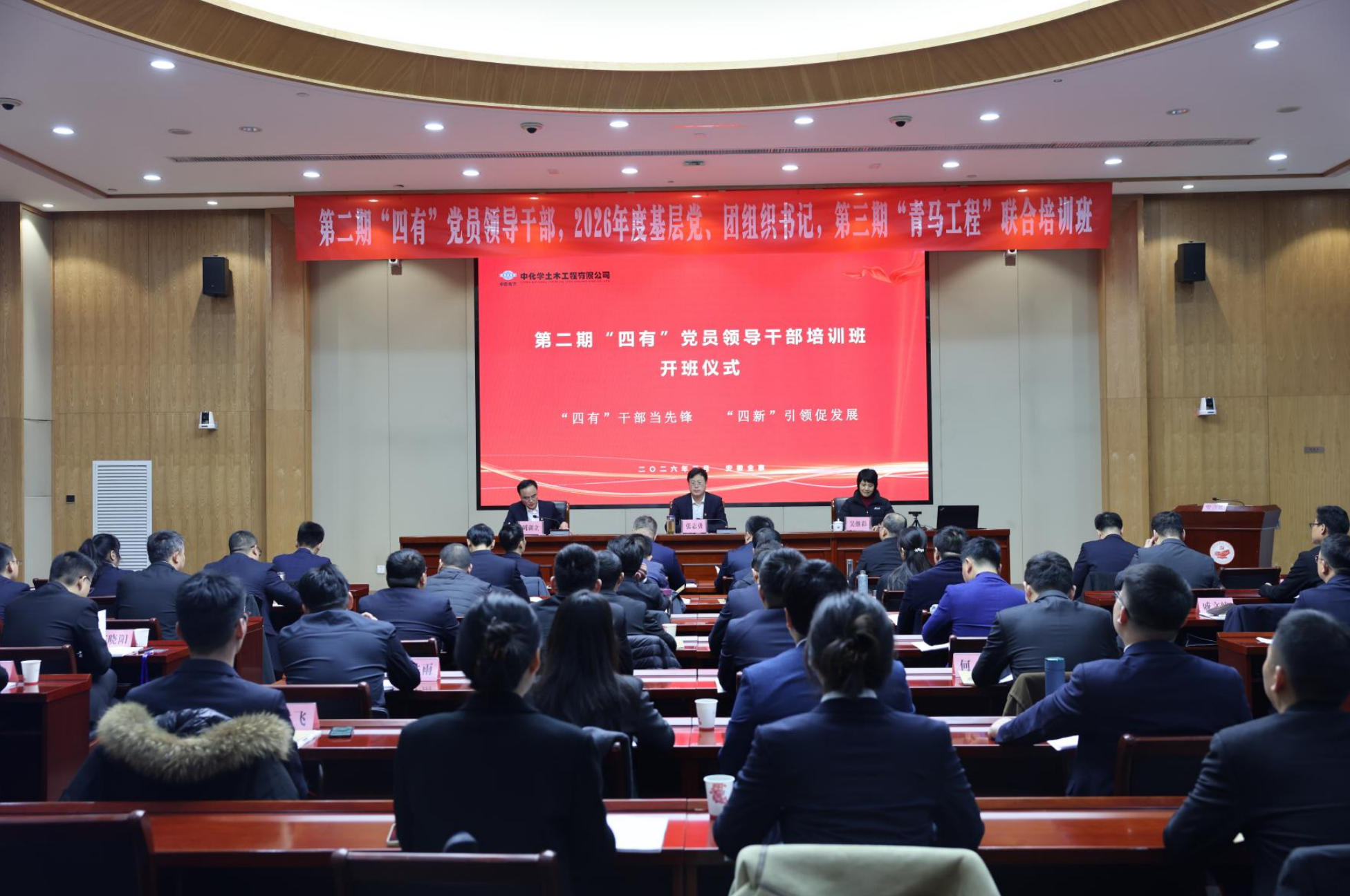 为深入学习贯彻习近平总书记重要指示批示精神,在习近平总书记考察金寨10周年之际,2月24日到3月2日,我院春节后首个培训班——中化学土木工程有限公司第二期“四有”党员领导干部、2026年度党团组织书记及第三期“青马工程”联合培训班在我院成功举办,50多名学员参加了为期七天的集中培训。