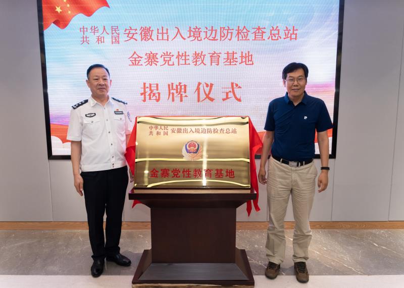 6月22日上午,安徽出入境边防检查总站党性教育基地揭牌仪式在安徽金寨干部学院举行。安徽边检总站党委书记、政治委员张海峰,党委委员、后勤保障处处长陆华云,党委委员、边防检查处处长韩明光,党委委员、政治处主任赵岩松,金寨县委副书记、副县长闫福震出席仪式。