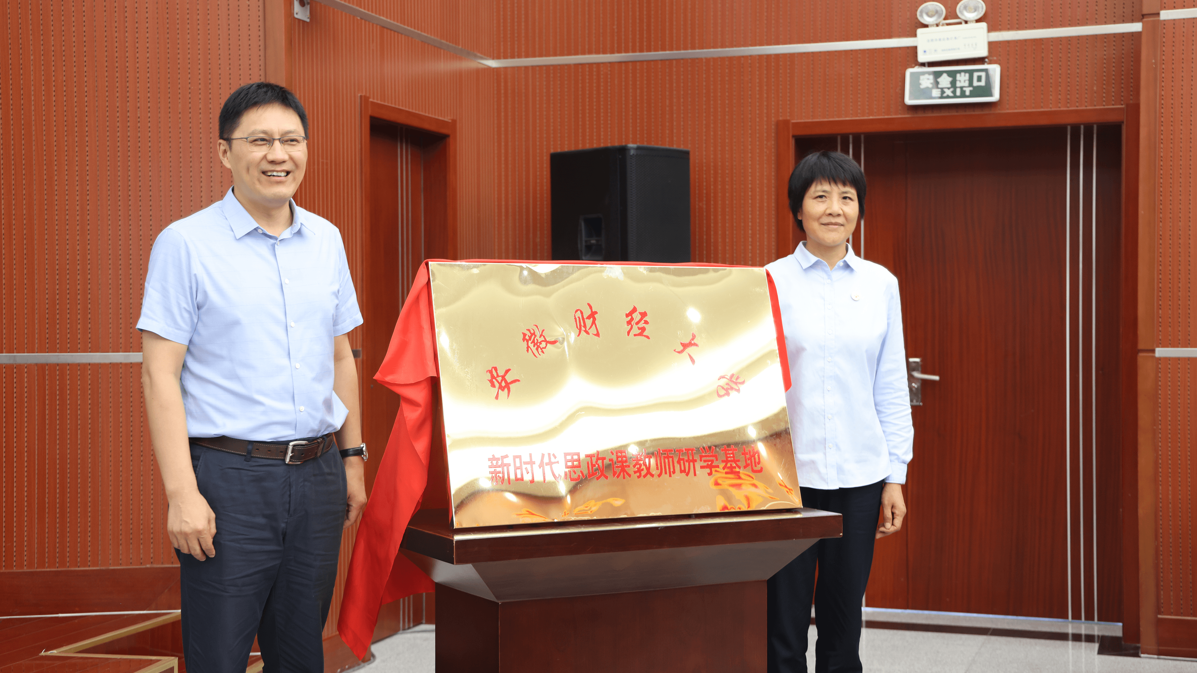 张斌和吴继彩共同为安徽财经大学新时代思政课教师研学基地揭牌。