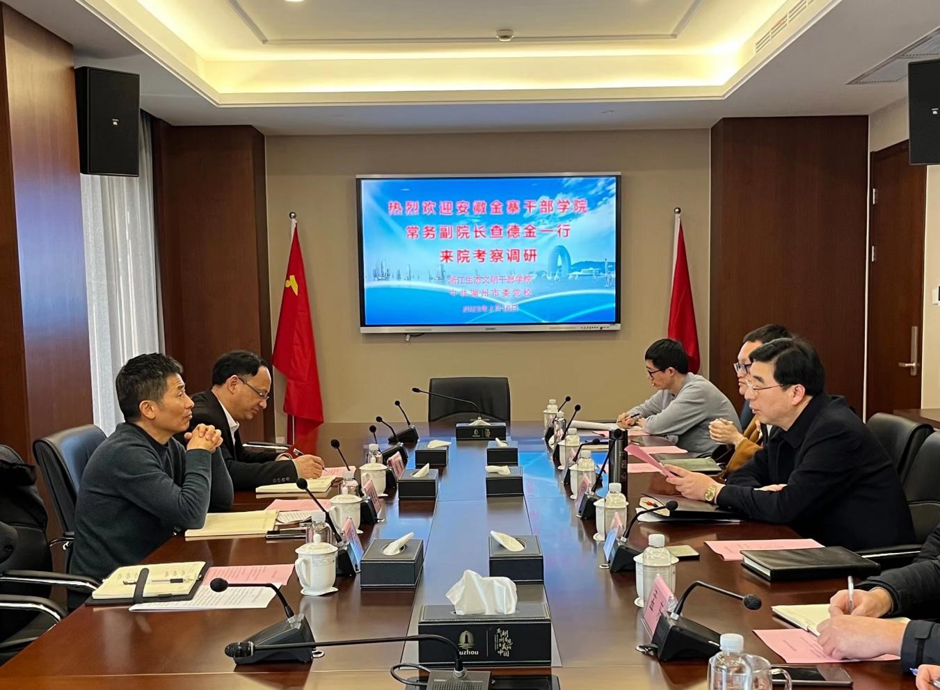 为进一步学习借鉴干部教育培训实践的成功经验,加强对生态文明精神思想的探索与研究,2月16日下午,县委常委、安徽金寨干部学院(中共金寨县委党校)常务副院(校)长查德金一行赴浙江生态文明干部学院学习考察,学习浙江生态文明干部学院干部教育培训先进经验,共谋干部学院合作新发展。