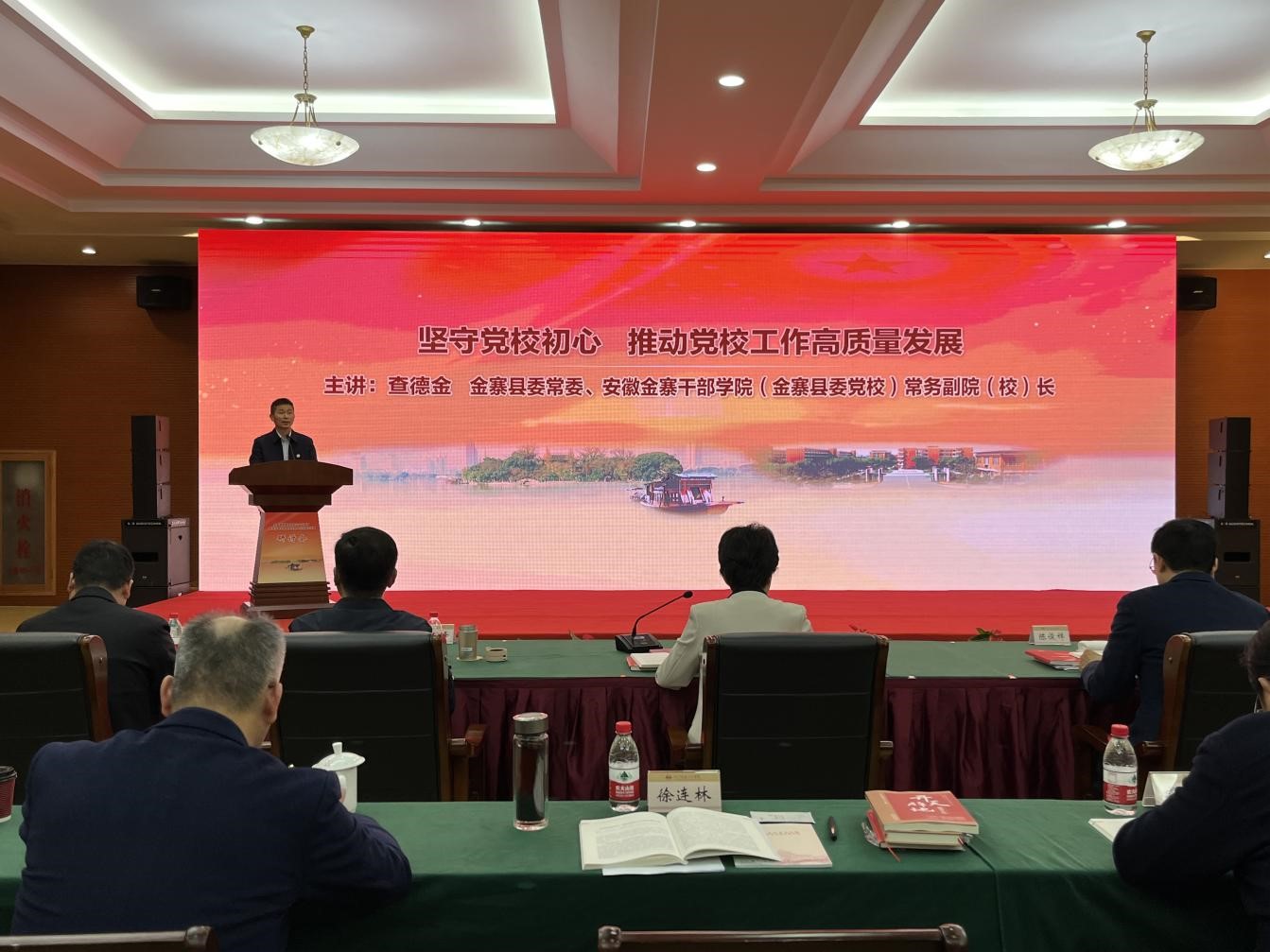查德金代表安徽金寨干部学院向大会作题为“坚守党校初心 推动党校工作高质量发展”的专题报告。他强调,做好新时代干部教育培训工作使命光荣、责任重大,必须强化使命担当,自觉增强责任感和使命感;必须坚持姓党原则,牢牢把握正确办学方向;必须推动质量立校,全面提升教学科研水平;必须坚持从严治校,细化硬化各项管理措施。深入贯彻落实党的二十大关于干部教育提出的新理念新要求,践行“为党育才、为党献策”的初心使命,找准干部学院和党校工作的着力点,提升党性教育针对性、有效性,锐意进取、奋楫扬帆,向着规范化、特色化、内涵式的目标,全力推进党性教育工作高质量发展。