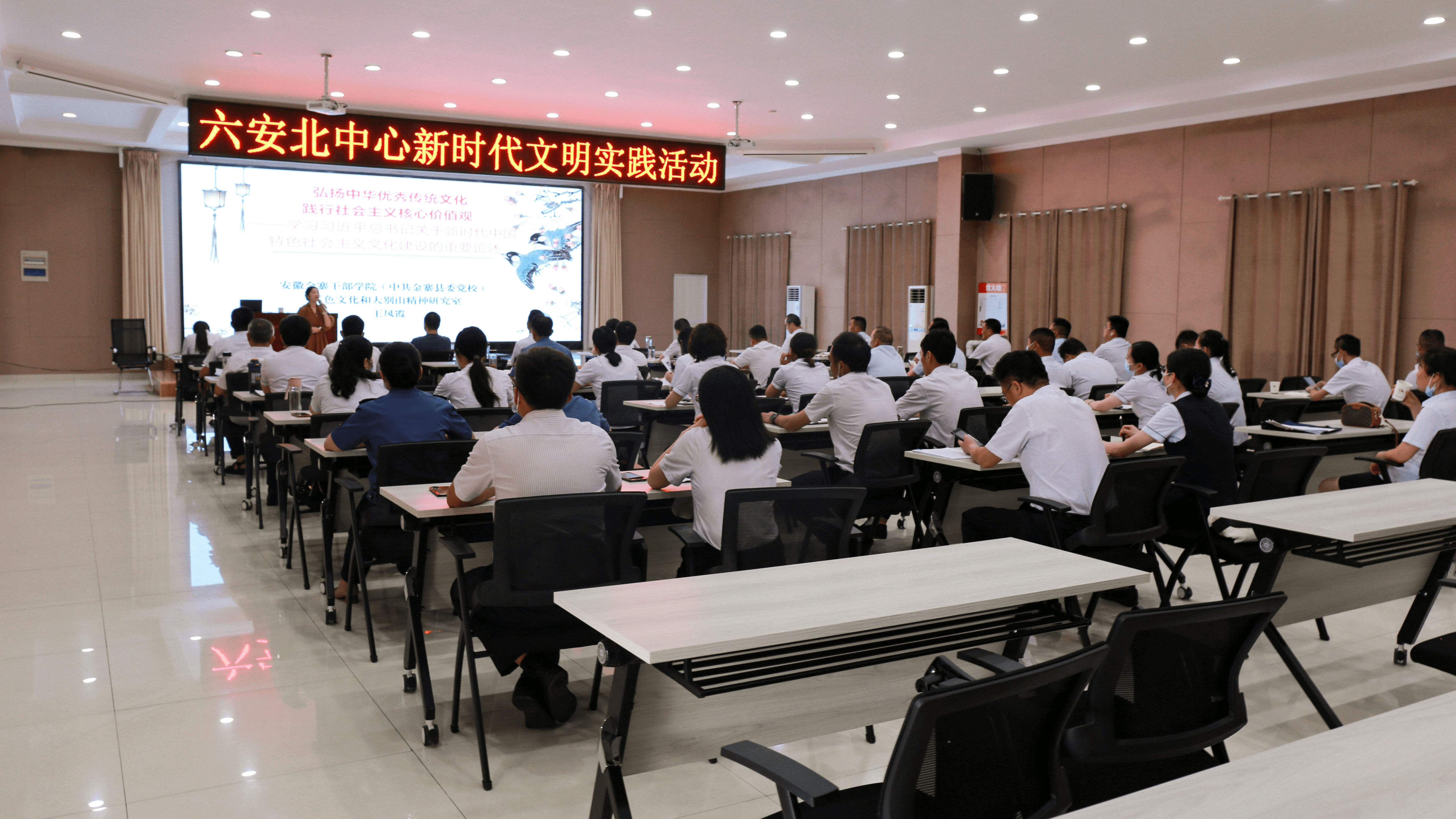6月28日下午,红研室教师王凤霞受邀为安徽省交通控股集团六安北高速公路管理中心宣讲。她以《弘扬中华优秀传统文化,践行社会主义核心价值观》为题,与大家一起学习了习近平新时代中国特色社会主义思想文化建设的重要论述。在不断地学习与宣讲中,她更深地体会到习近平总书记所说:“要锤炼品德,自觉树立和践行社会主义核心价值观,自觉用中华优秀传统文化、革命文化、社会主义先进文化培根铸魂、启智润心”。她认为在自己岗位上讲好党的理论、党的历史,是这个时代赋予党校老师的神圣使命。只有勇担使命,才能不负韶华。