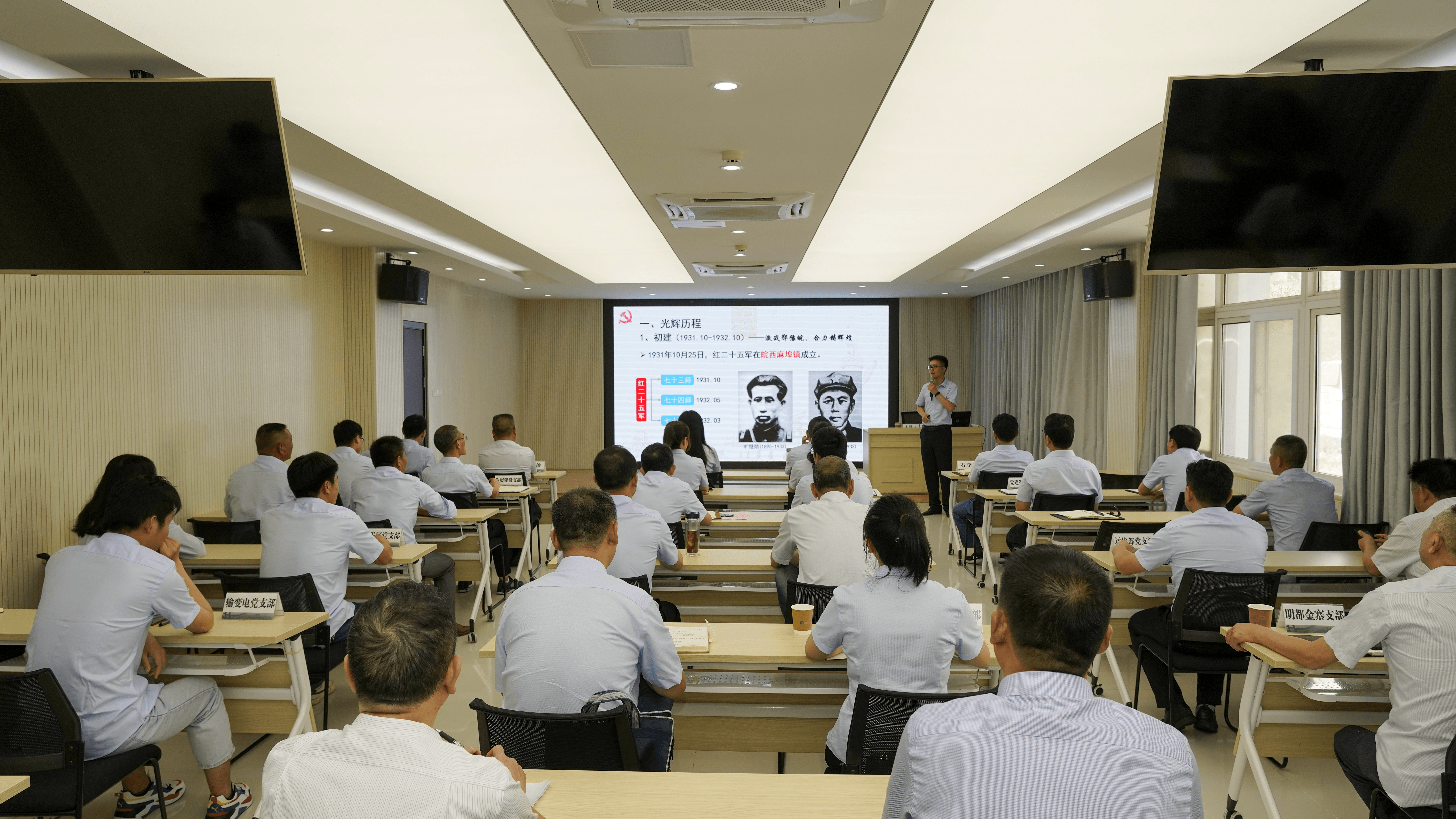 7月1日上午,红研室教师陈仁喜受邀在国网金寨供电公司庆祝建党101周年活动中讲授《红二十五军的历史功勋及启示》。他在课程中带领大家重温了习近平总书记两次视察安徽的重要讲话精神,给大家梳理了红二十五军从初建、坚守、长征、转战四个阶段的光辉历程,以五个关键词凝练概述红二十五军的历史功勋,从对党忠诚、不怕牺牲、密切联系群众、坚持实事求是等方面总结了启示意义。陈仁喜曾经跟着安徽电视台《八月桂花遍地开》摄制组重走了红二十五军的长征路,那段历时两个多月的难忘经历让他对红二十五军的历史有了全新的认识,也更加坚定了他讲好这支英雄部队传奇故事的决心。