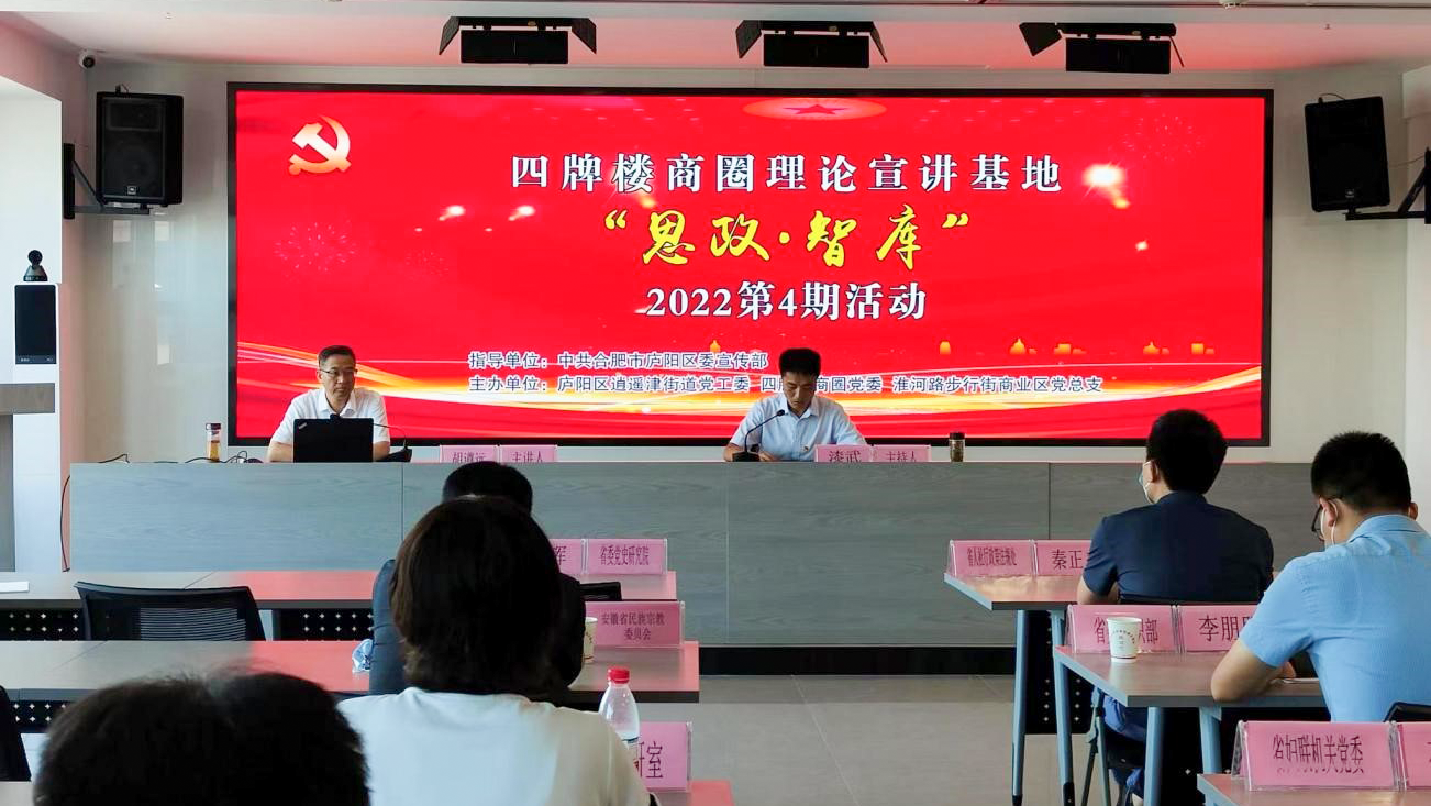 四牌楼商圈理论宣讲基地“思政智库”由合肥市庐阳区委宣传部指导,庐阳区逍遥津街道党工委、四牌楼商圈党委、淮河路步行街商业区党总支主办。
